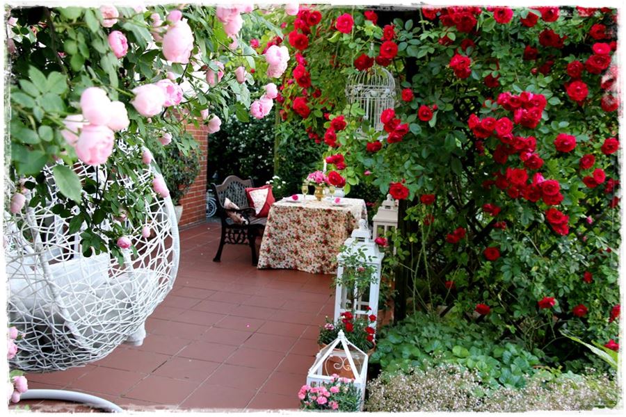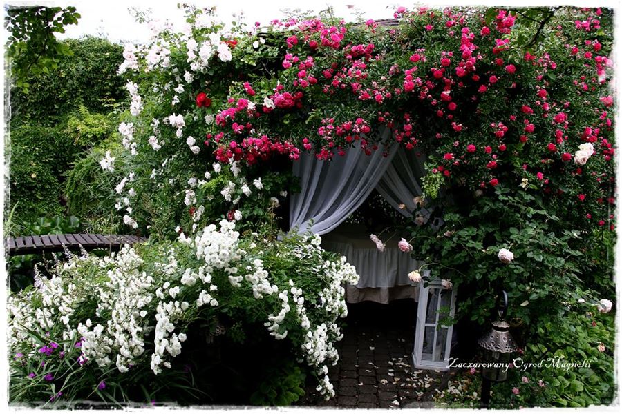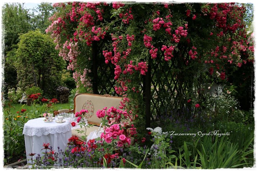 Natomiast na zakończenie spójrz i uświadom sobie, że są tacy pasjonaci róż, którzy w swoich ogrodach mają je nawet w dekoracjach, a odpowiednie odmiany nawet w deserach czy napojach.