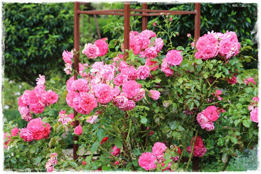 róże pnące – to krzewy, które opierają się o podpory, a zatem wymagające określonego stelaża, który mogą oplatać. Co ważne, róże nie owijają się samoczynnie wokół podpór, nie mają też organów tzw. czepnych. W zależności od odmian mają sztywne lub giętkie pędy, dorastają nawet do 5-6 metrów długości, kwitną raz lub kilka razy w sezonie. Nadają się idealnie do obrastania ogrodzeń, pergoli, altanek i tym podobnych ogrodowych konstrukcji.
