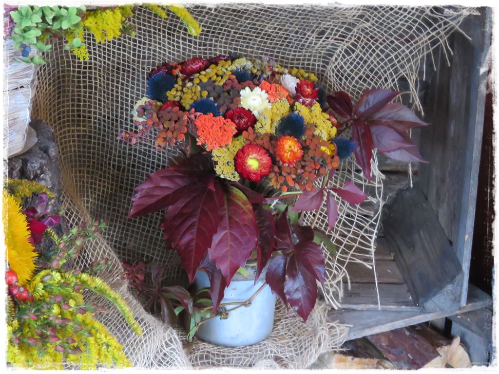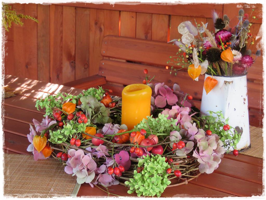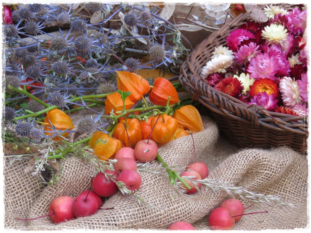 Jesień to w ogrodzie wyjątkowo hojna pora roku. Poza przepięknymi kolorami przebarwiających się liści, wieloma kwitnącymi jeszcze roślinami, oferuje również niezwykłe bogactwo darów i materiałów, które można spożytkować do wykonania jesiennych dekoracji.