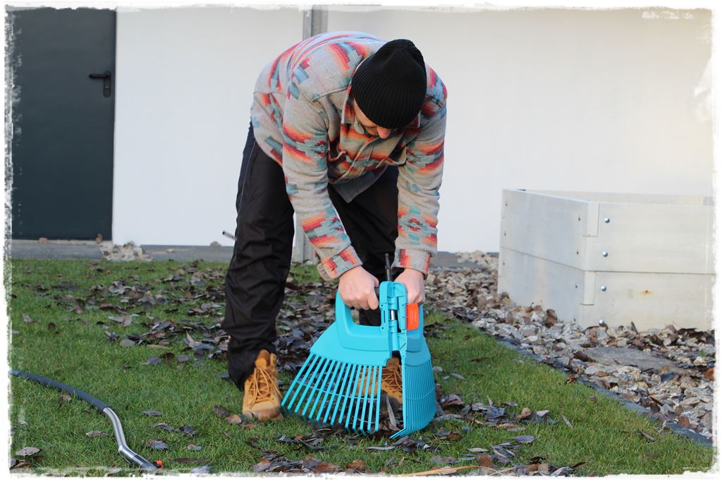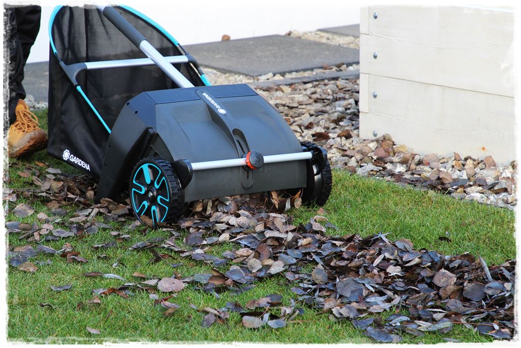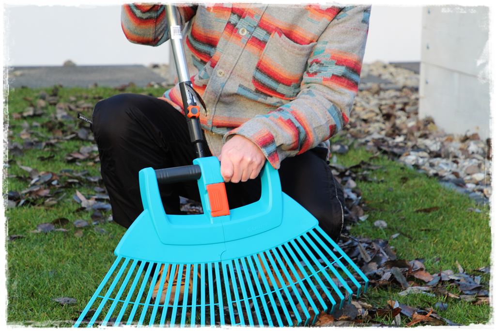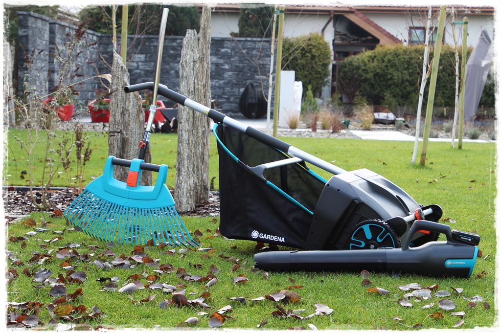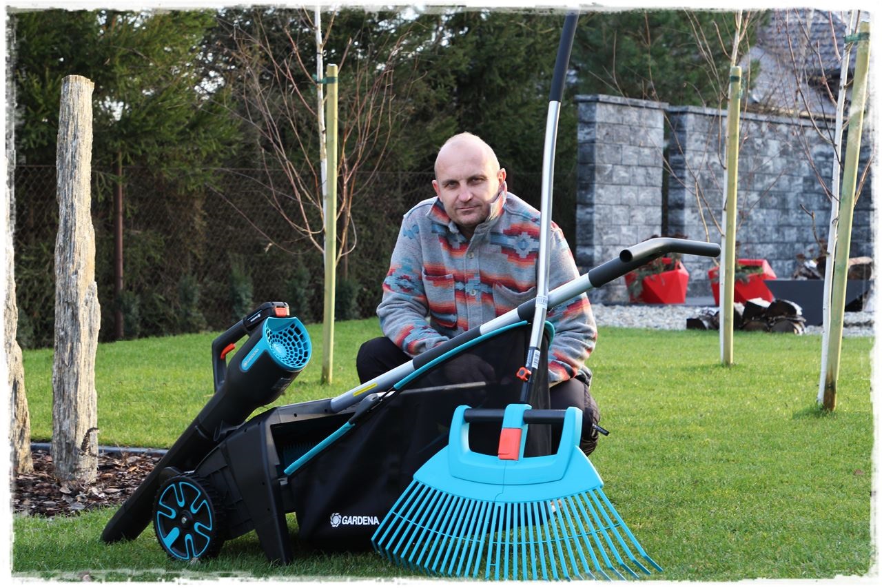 z której to mnóstwo liści spadło właśnie do mnie. I to głównie w kamienne rabaty, z których jak się domyślasz, sprzątanie nie jest zbyt komfortowe i oczywiste. Przynajmniej przy użyciu wspomnianych tylko grabi. Stąd właśnie dochodzimy do sedna sprawy, czyli czym komfortowo wykonać jesienne sprzątanie liści? A w moim przypadku był to taki zestaw Gardena,
