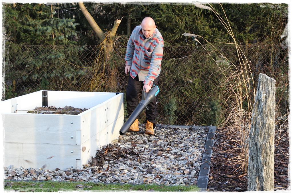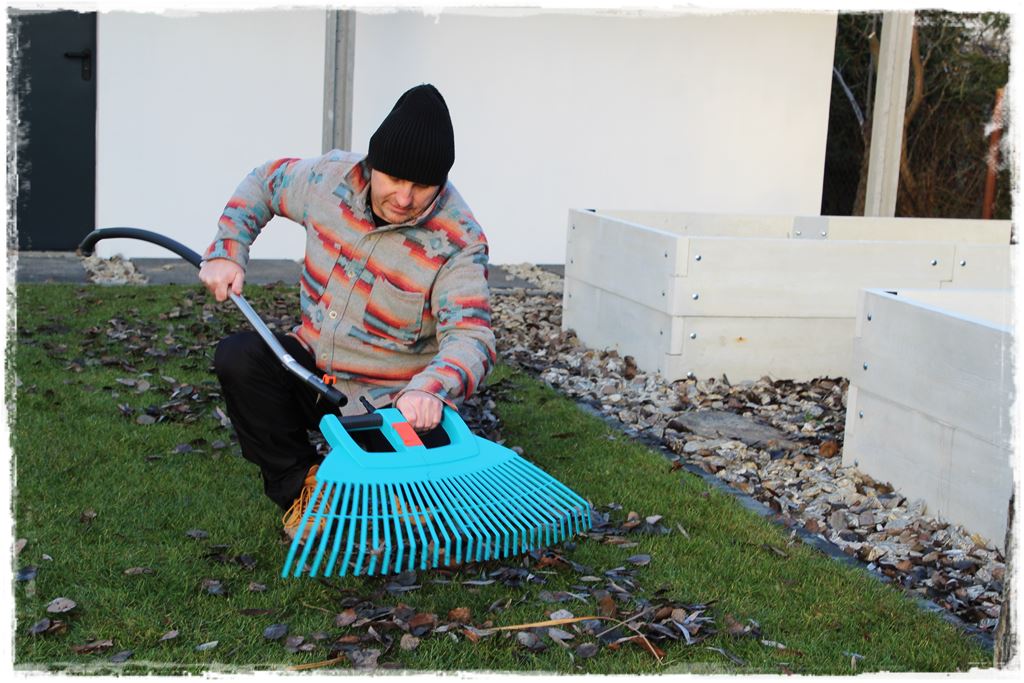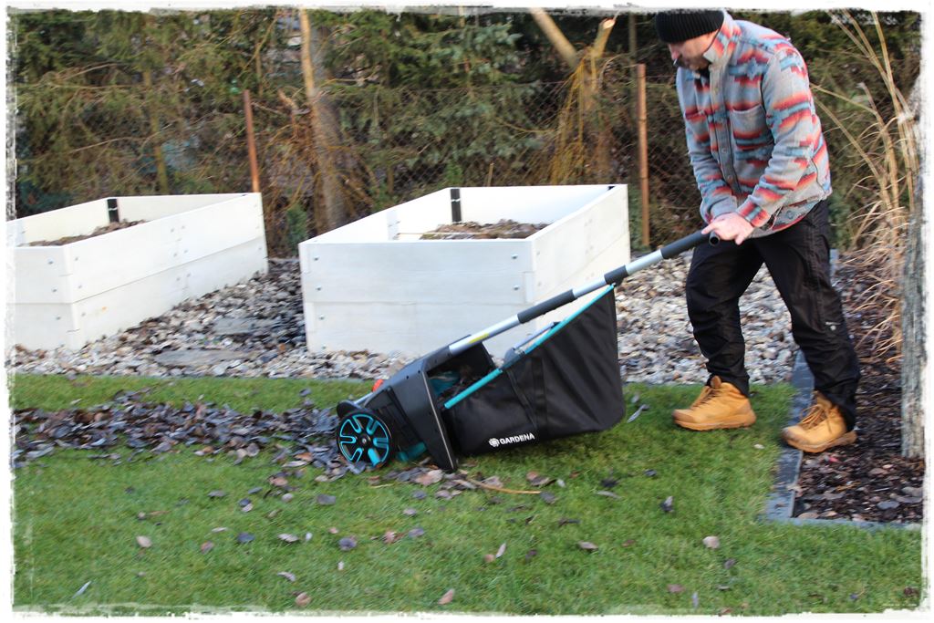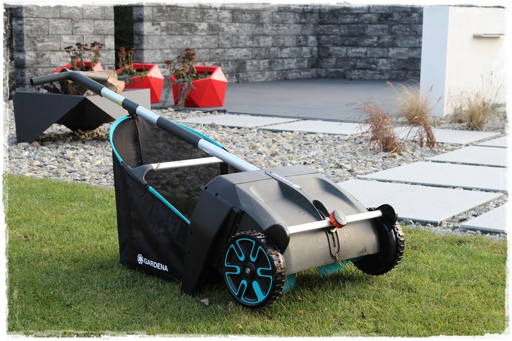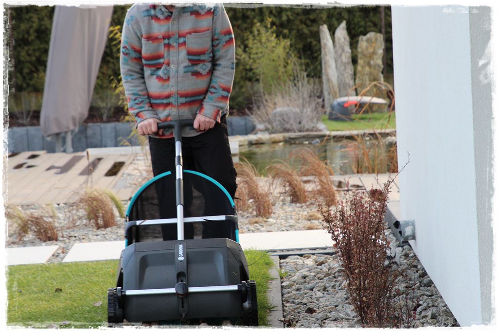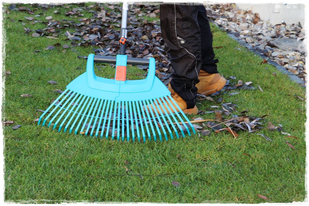 z której to mnóstwo liści spadło właśnie do mnie. I to głównie w kamienne rabaty, z których jak się domyślasz, sprzątanie nie jest zbyt komfortowe i oczywiste. Przynajmniej przy użyciu wspomnianych tylko grabi. Stąd właśnie dochodzimy do sedna sprawy, czyli czym komfortowo wykonać jesienne sprzątanie liści? A w moim przypadku był to taki zestaw Gardena,