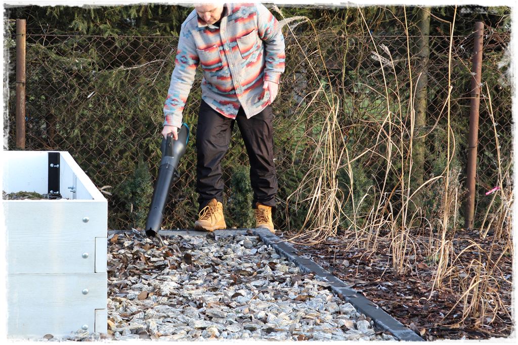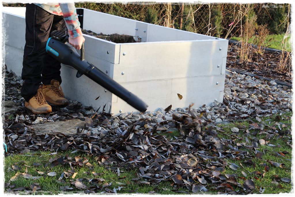 Natomiast sprawa komplikuje się w przypadku rabat, gdzie wygrabienie liści nie jest możliwe. I tu właśnie z pomocą przyszła mi akumulatorowa dmuchawa, lekka, ale bardzo wydajna. Natomiast co ważne z regulowaną mocą pracy, co umożliwia wydmuchiwanie z chodników i rabat, bez uszczerbku dla ich nawierzchni.