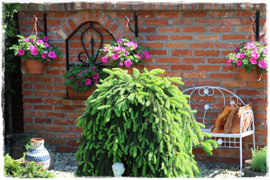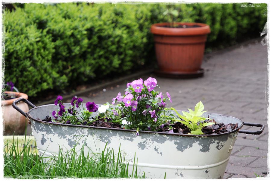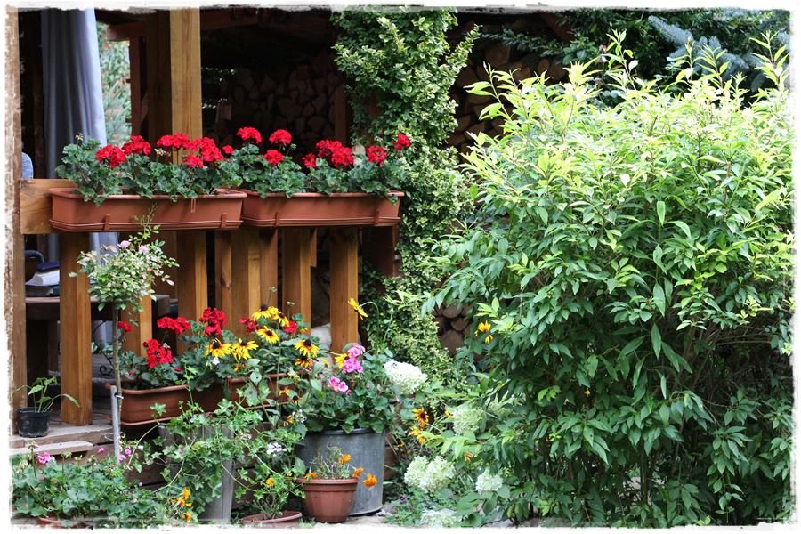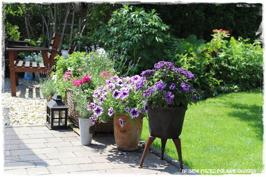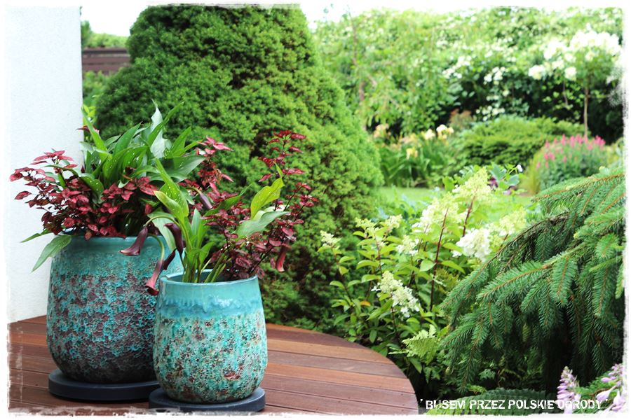 Ja mam na tarasie drewniane donice, a zwykłe, plastikowe, jednorazowe wkładam do koszy lub własnoręcznie wykonanych osłonek. 🙂 Wyglądają wtedy bardzo naturalnie i wkomponowują się do całości ogrodu.
