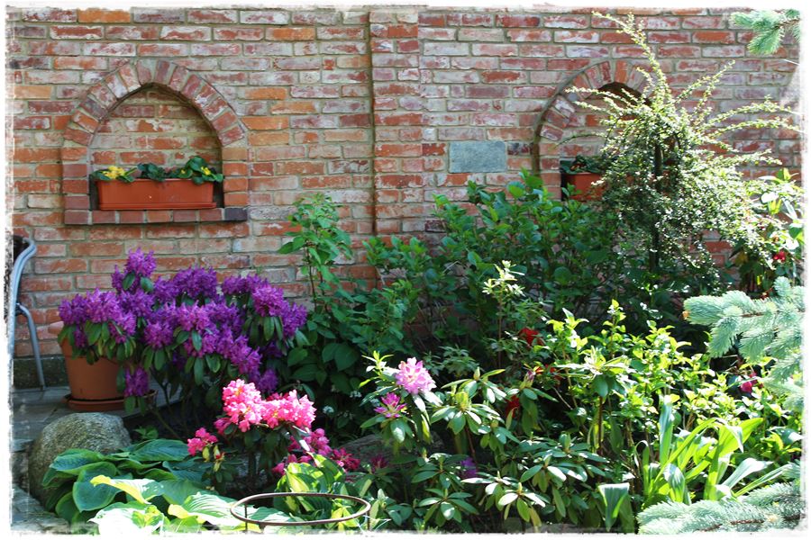 Czyli donice murowane, przybierające formy podwyższonych rabat. Jest to coraz częstsze zjawisko w ogrodzie, z reguły wykonywane łącznie z ogólnymi pracami brukarskimi. Poświęciłem temu kiedyś pewien wpis, ponieważ ogród taki mieliśmy przyjemność realizować.