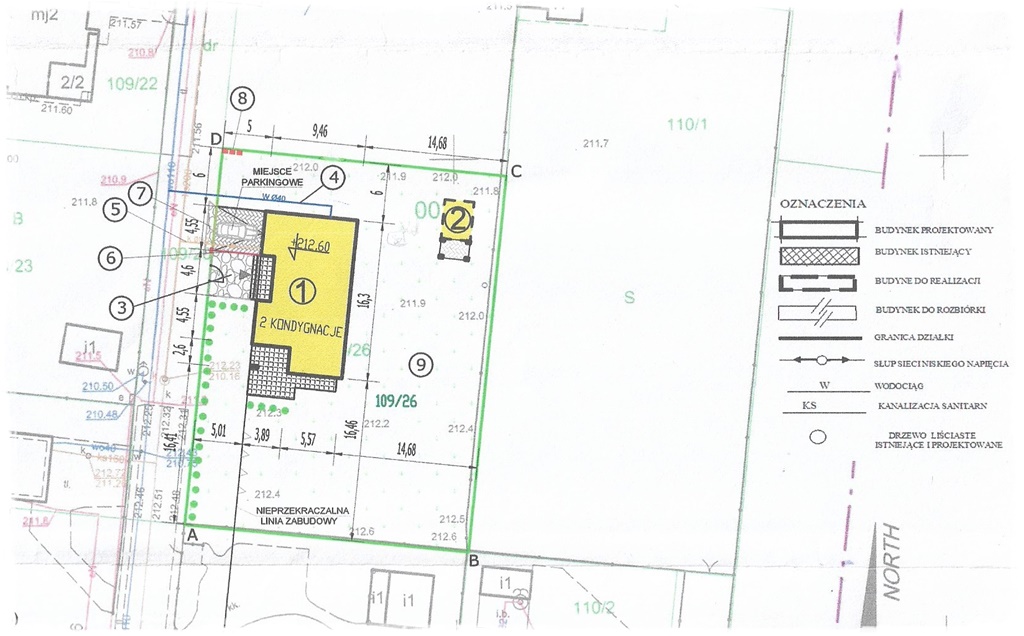 Plan zagospodarowania terenu, który jest załącznikiem do pozwolenia na budowę wygląda następująco: