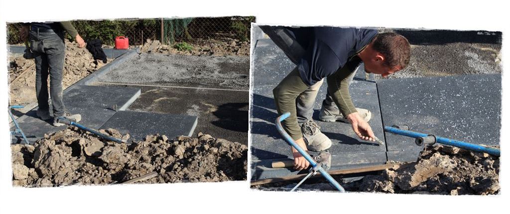 Dodam jeszcze, że korekta ułożenia płyt była wykonywana na bieżąco (ręcznie gumowym młotkiem), a na koniec, po fugowaniu pyłem bazaltowy o frakcji 0-2 milimetry,