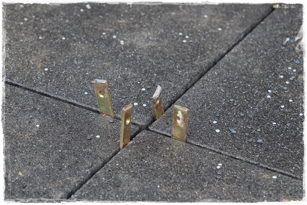 Teoretycznie wydaje się to proste, jednak jest jeden element, na który trzeba zwrócić szczególną uwagę. To wykonanie odpowiednich fug, czyli odstępów między płytami, które w przypadku płyt o grubości 8 centymetrów, powinny wynosić od 3 do 5 milimetrów. Ja zdecydowałem się na odstępy 5 milimetrowe, które aby zachować, trzeba zastosować odpowiednie metalowe dystanse, wkładane pomiędzy każdą płytę.