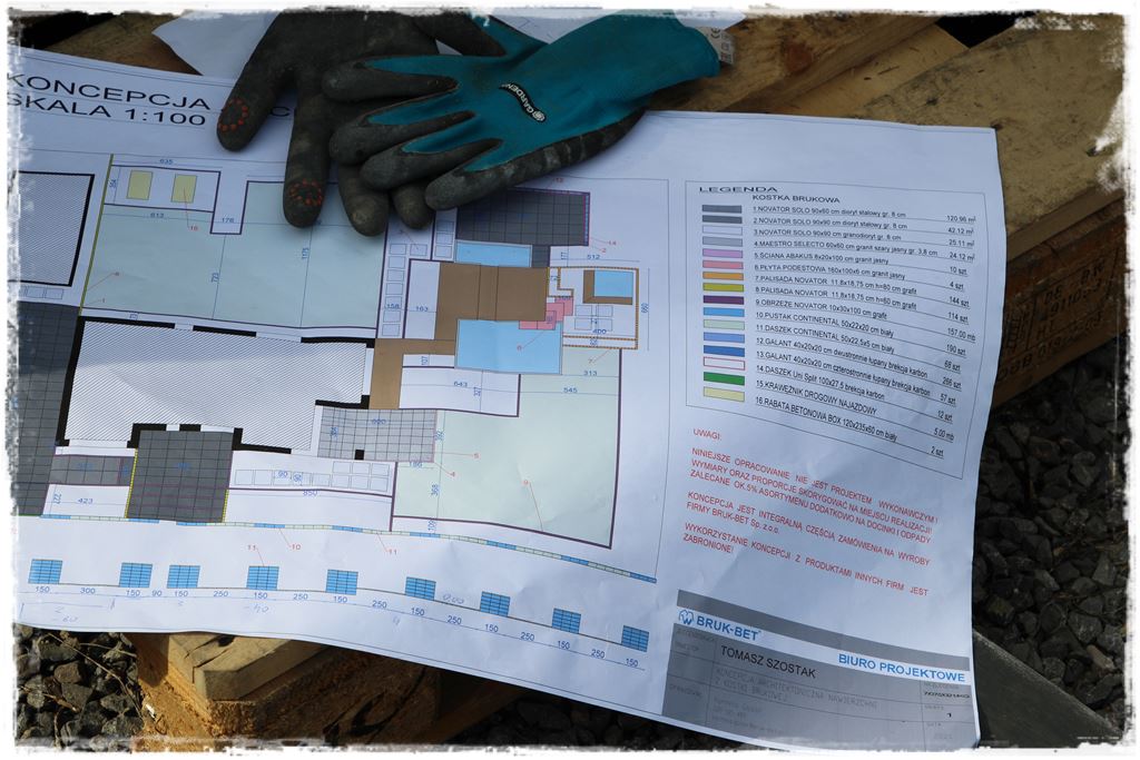 projekt ogrodu w zakresie nawierzchni, ogrodzeń, systemów murowych, obrzeży, stopni, tarasów betonowych: Marka Bruk – Bet