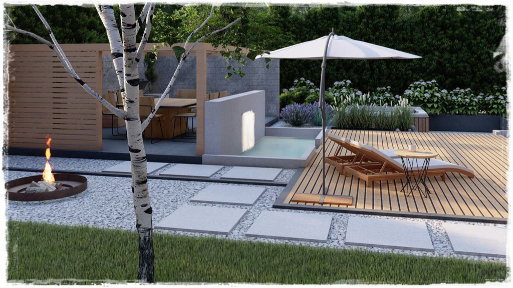 projekt ogrodu w zakresie ogólnej koncepcji, rozplanowania stref, funkcjonalności, części roślinnej, wodnej, oświetleniowej: Marka Quercus Mikołajczyk