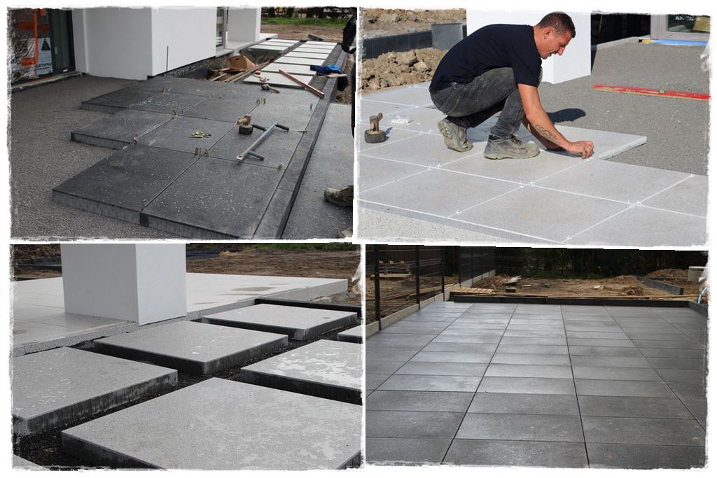 Jak w przypadku płyt wielkogabarytowych trzeba pamiętać również o fugach, które w tym przypadku powinny mieć od 3 do 10 milimetrów. Ja zdecydowałem się na 4 milimetrowe, co zachowane było z użyciem krzyżyków “do kafelkowania”. Płyty przy układaniu należy korygować młotkiem gumowym, natomiast po ułożeniu i obsypaniu (w moim przypadku pyłem piaskowym), nie należy dobijać zagęszczarką mechaniczną aby nie narazić ich na pękanie.
