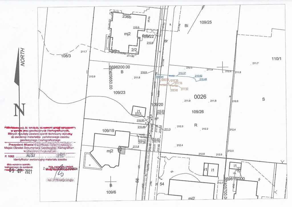 Ostatni krok tego krótkiego procesu to opracowanie map powykonawczych. Wykonuje je geodeta, właśnie w oparciu o powyższe pomiary. W toku prac sporządza tzw. operat techniczny, który oddaje do właściwego dla Twojej lokalizacji budowy urzędu, tzw. Ośrodka Dokumentacji Geodezyjnej i Kartograficznej. Tam operat jest kontrolowany, a w ślad za nim Twoje przyłącza nanoszone są na mapy państwowego zasobu. Natomiast dla Ciebie geodeta uzyskuje kopię tych map, tzw. właśnie mapy powykonawcze, w tym przypadku mapę powykonawczą przyłącza wodociągowego i kanalizacji sanitarnej. U mnie wygląda to tak: