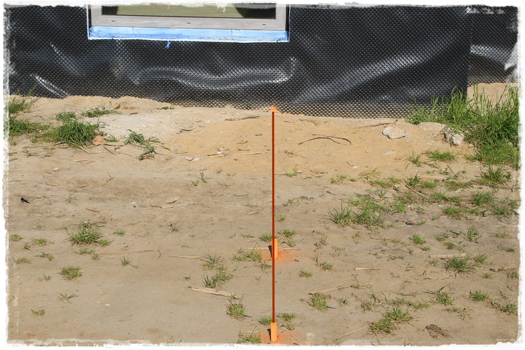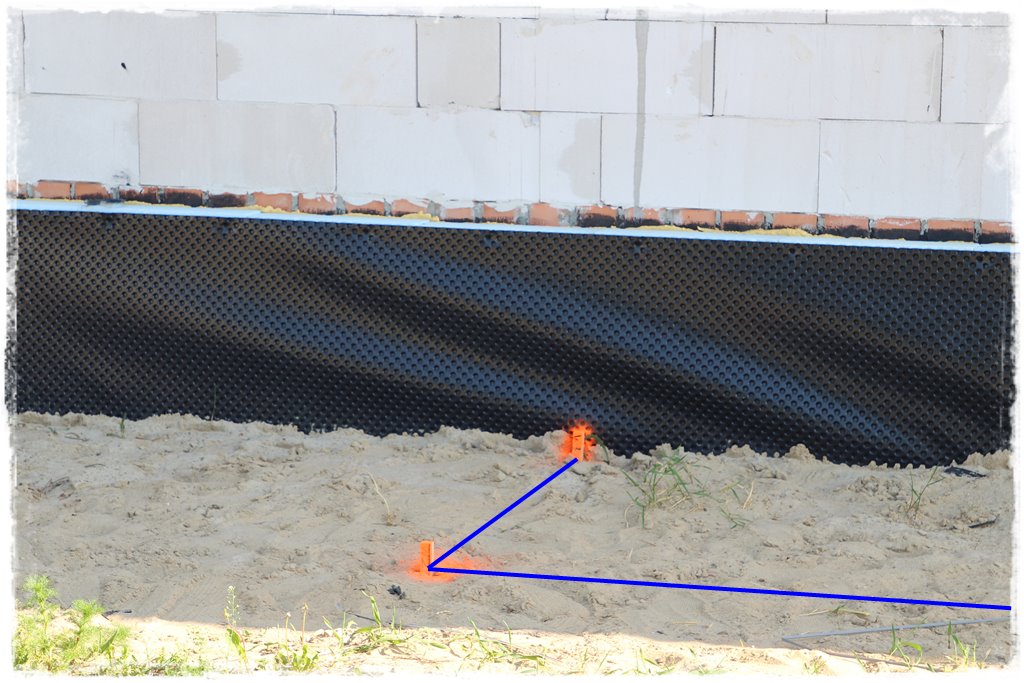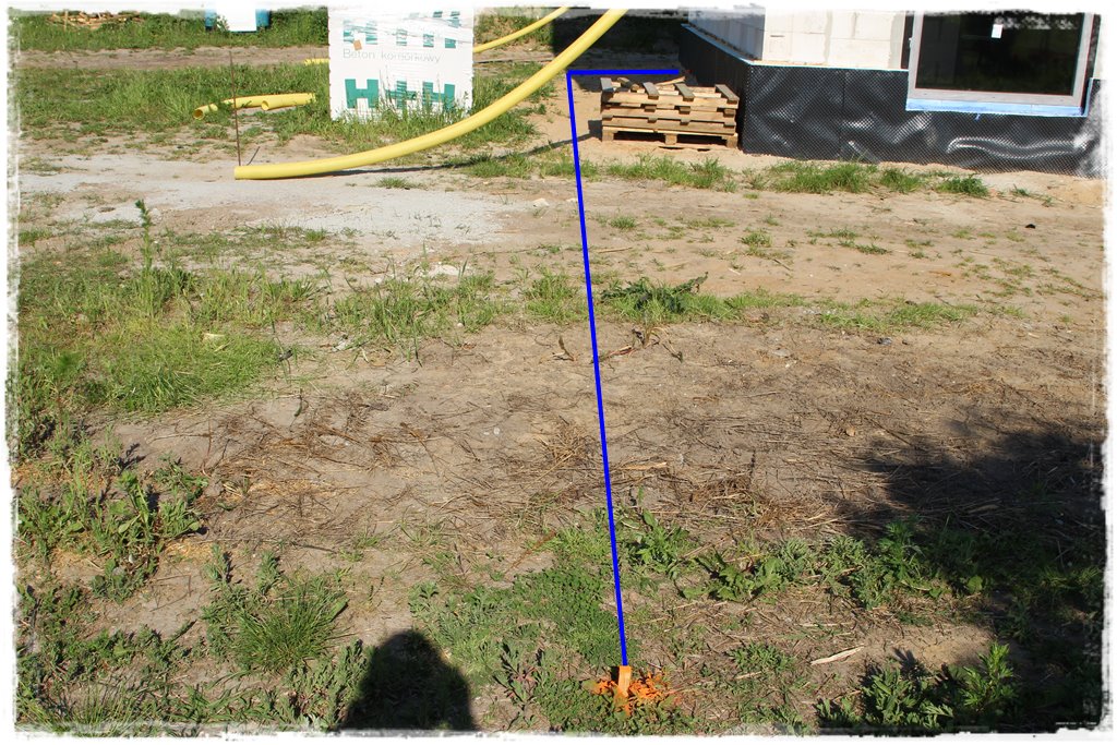 Jak już wiesz z kroku 1, przyłącza zostały wcześniej zaprojektowane, czyli naniesione na podkład mapowy. A skoro w określonym miejscu znalazły się na podkładzie mapowym (który jest kopią terenu), dokładnie w tym samym miejscu powinny znaleźć się w terenie. Aby tak jednak było, musisz skorzystać z usług geodety, który swoimi metodami odwzoruje (wytyczy) projekt w terenie. Czyli wyznaczy projektowaną trasę Twoich przyłączy. Wytyczenie odbywa się poprzez nabicie palików, które wyznaczają cały, projektowany przebieg przyłącza. W moim przypadku wyglądało to tak: