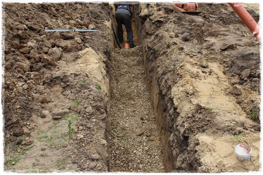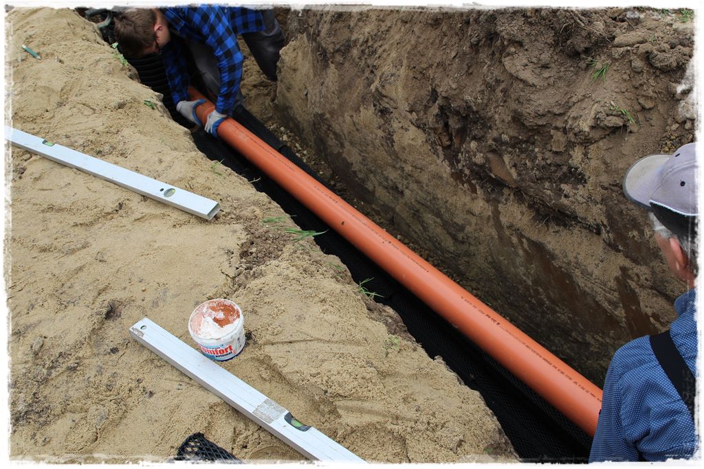 który przykryty został geowłókniną i następnie zasypany ziemią do góry wykopu.