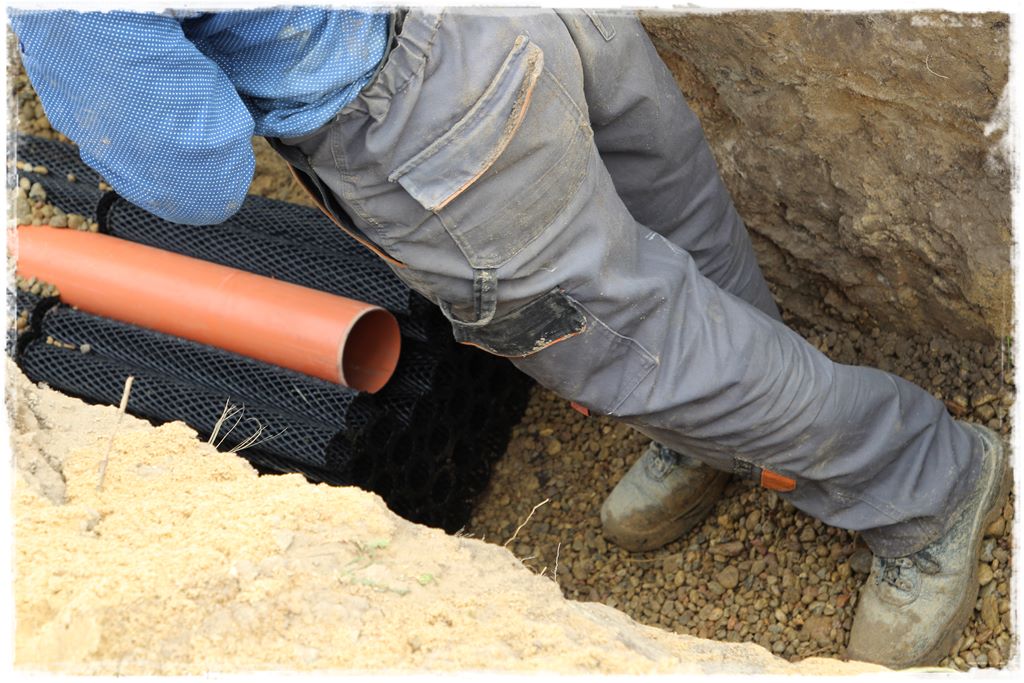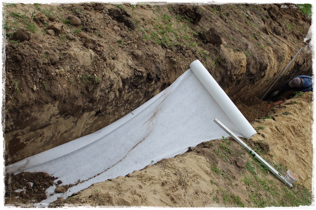 geowłóknina ochronna zabezpieczająca rury rozsączające przez zabrudzeniem ziemią,