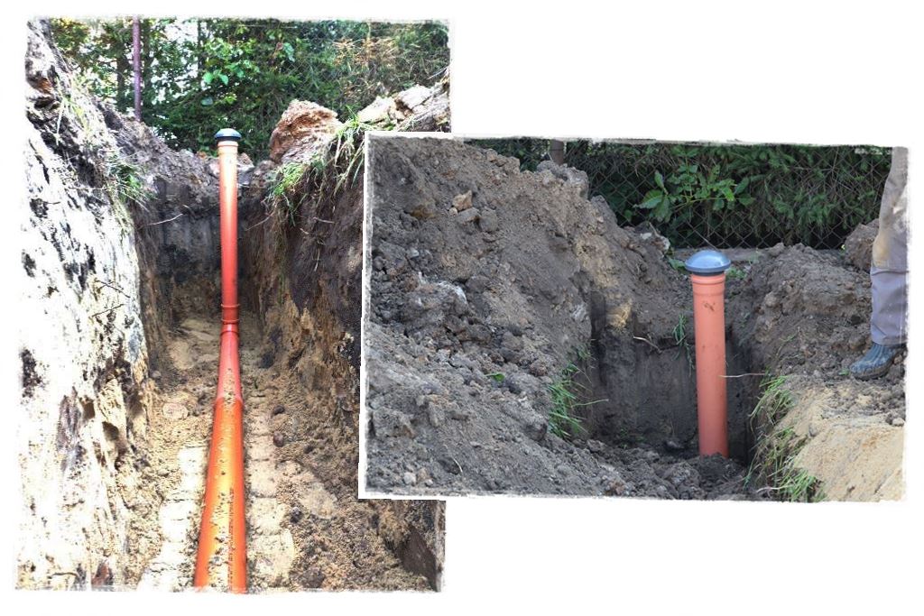Jeśli spojrzysz na powyższy schemat, zobaczysz że studzienka osadzona jest tuż za zbiornikiem i połączona z nim krótkim odcinkiem rury. I to właśnie był wstęp do dalszych prac, jako że to właśnie ze studzienki wychodzą trzy nitki sieci rozsączających.