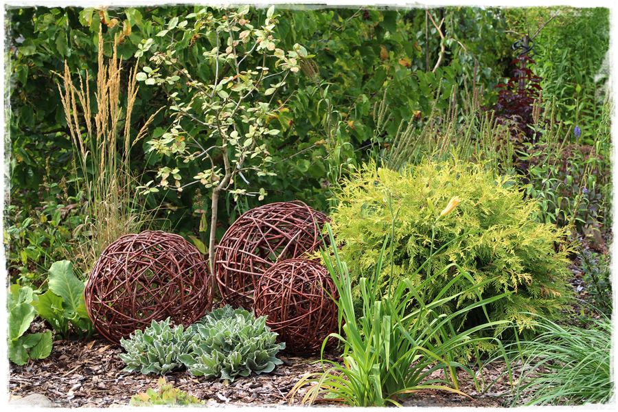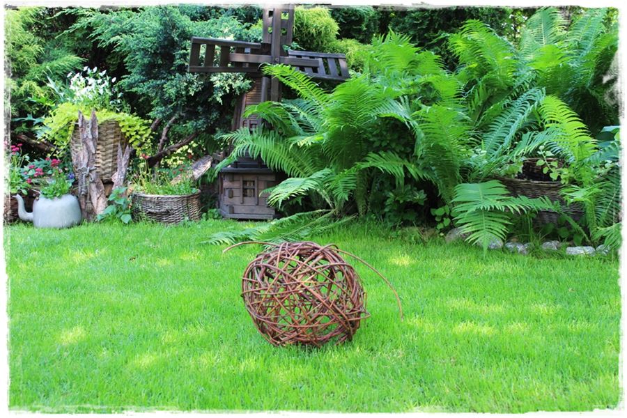 Kule wiklinowe zdecydowanie bardziej pasują do ogrodów wiejskich, naturalistycznych, gdzie ciekawie wyglądają w kompozycjach na rabatach, jak również luźno poukładane na trawniku.
