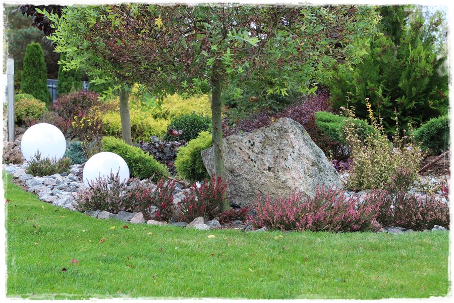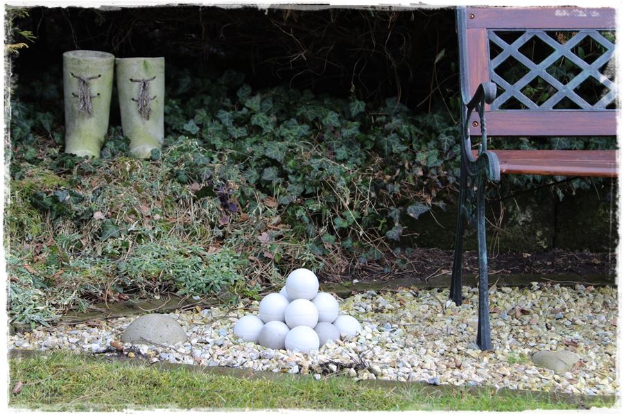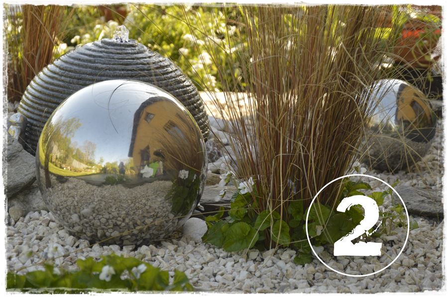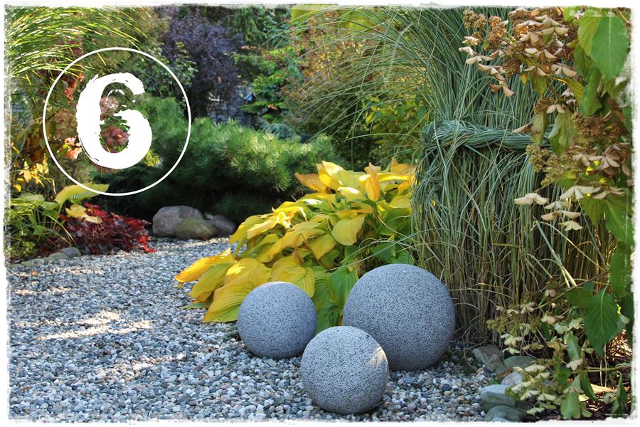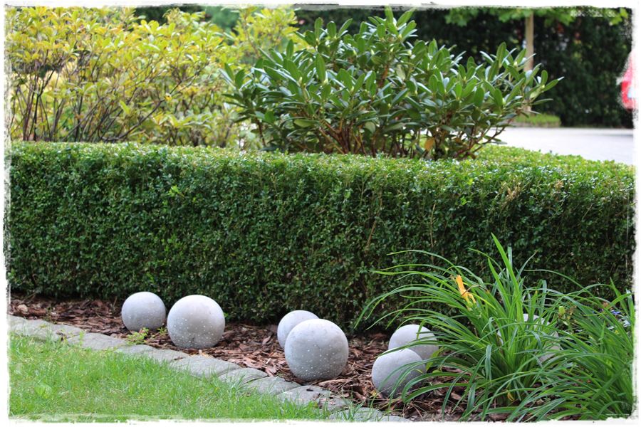 Podobnie jak kule stojące, kule leżące również wyglądają ciekawie. Ładnie kontrastują z roślinami i innymi elementami, przyciągają wzrok i wprowadzają element elegancji.