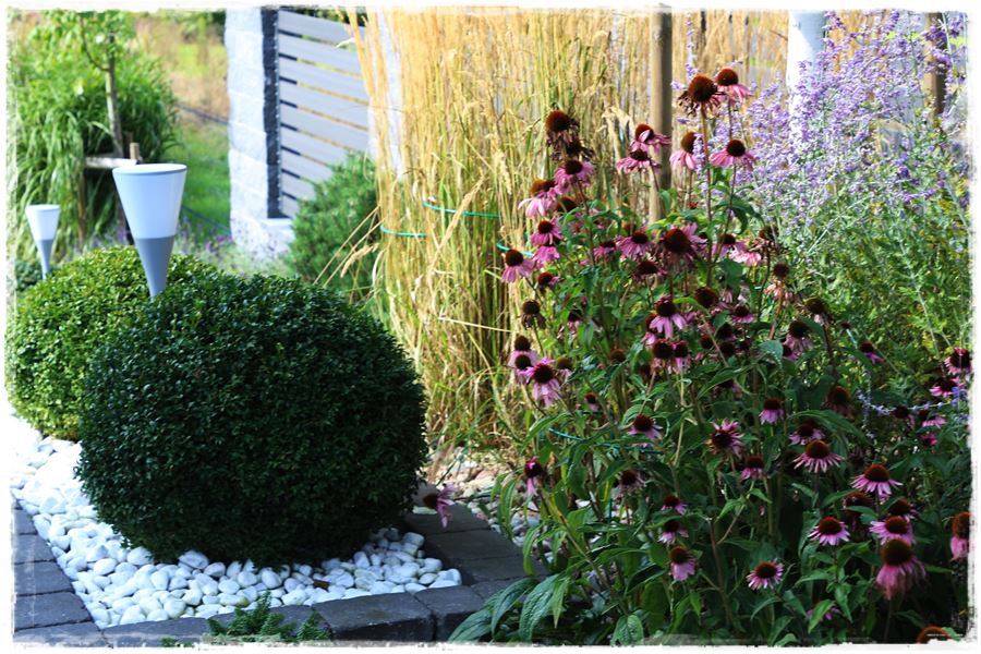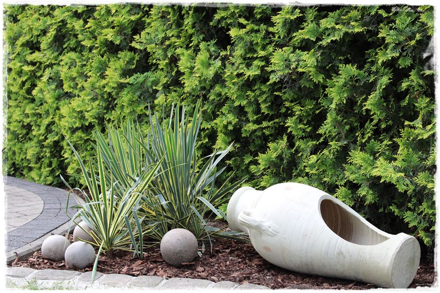 Kule betonowe to moja ulubiona propozycja. Wprowadzają element surowości, który kojarzy się z trwałością. Fajnie kontrastują z roślinami, są dobrze widoczne i sprawdzą się na każdej rabacie.