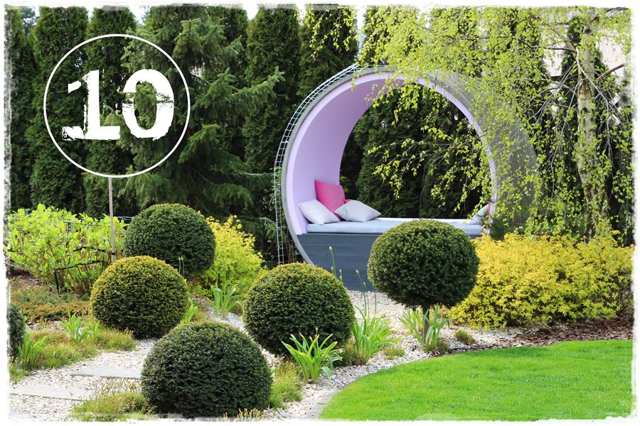 Propozycja numer dziewięć, to propozycja, którą wprowadza do ogrodu sama natura. Ogromna ilość roślin, bylin, kwiatów, a nawet owoców, które mają formę właśnie kulistą. Warto wspomnieć chociażby o czosnkach ozdobnych, dali pomponiastej czy przegorzanach, które wprowadzają nie tylko kuliste zróżnicowanie wielkościowe, ale również kolorystyczne.