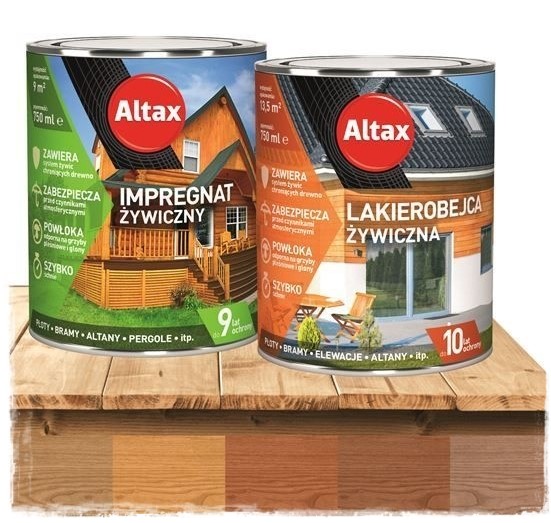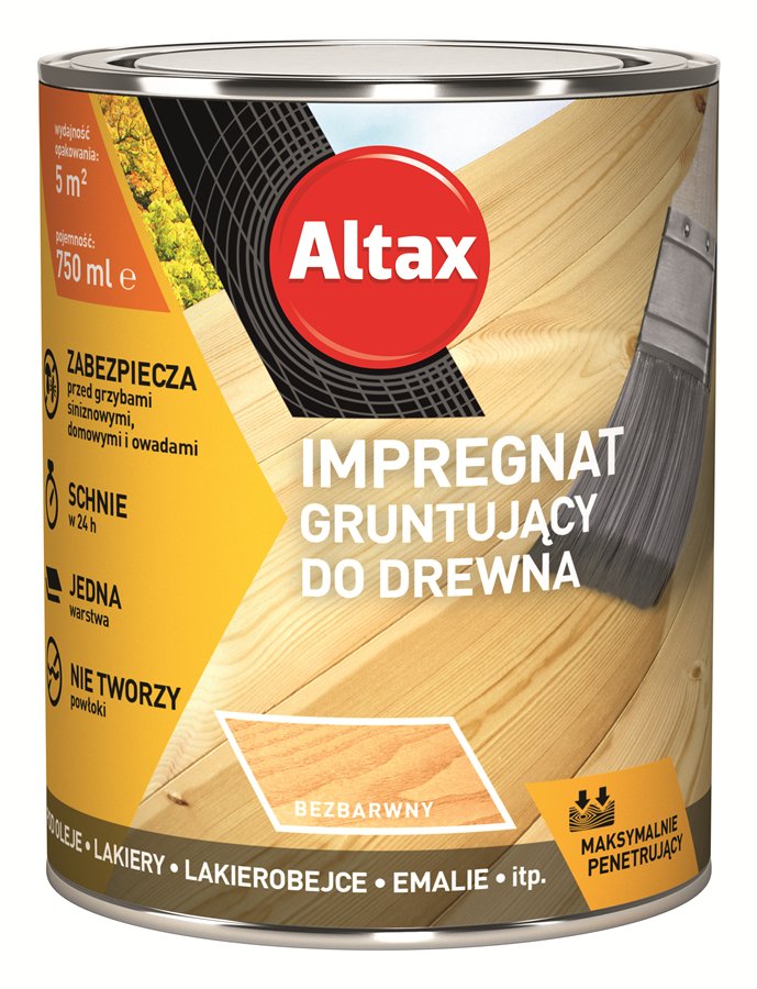 Surowe drewno zawsze najpierw należy zabezpieczyć przed tzw. biokorozją (grzybami pleśniowymi, domowymi, sinizną oraz owadami żerującymi w drewnie). W tym celu można zastosować np. Altax Impregnat gruntujący do drewna. Nie zmienia koloru powierzchni, nie tworzy powłoki i może być stosowany pod wszystkie inne produkty np. lakiery, lakierobejce, impregnaty i oleje. Co ważne, do skutecznego zabezpieczenia drewna wystarczy jedna warstwa impregnatu gruntującego.