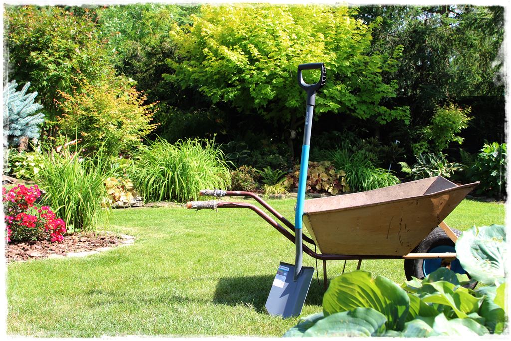 Szpadel – niezastąpiony gdy trzeba coś wykopać. Np. pod nasadzenia. A skoro szpadel to i taczka, bo nadmiar ziemi, czy inne odpady trzeba jakoś wywieźć.