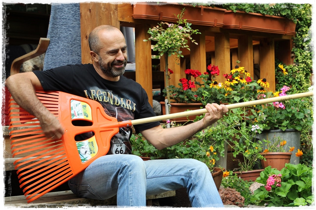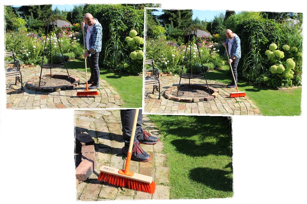 No dobrze. Ale system CLICK to nie tylko grabie. To także szczotki, które również na ten sam trzonek, tym samym sposobem możesz zakładać. Jak na przykład Robert, Właściciel pięknego ogrodu, który odwiedziłem.