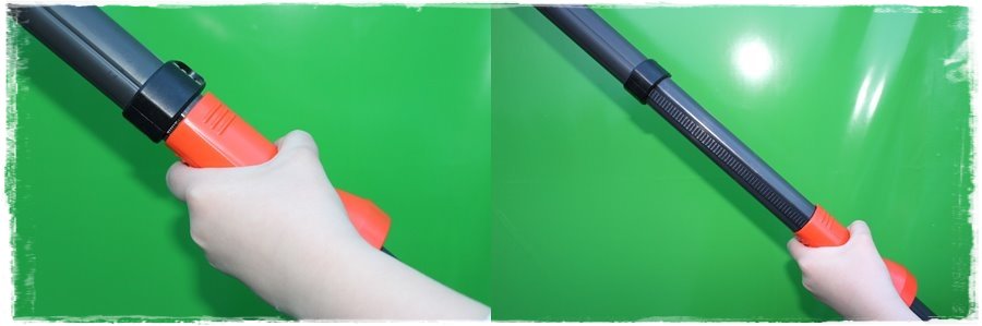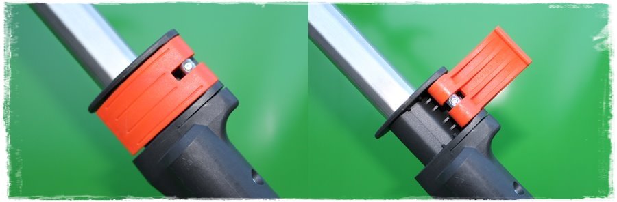 - głowicę (końcówkę sekatora) można regulować pod dowolnym kątem, również wtedy, gdy znajduje się ona w koronie drzew – nie trzeba ściągać sekatora na dół, żeby go regulować,