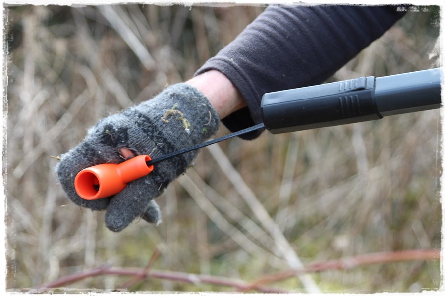 linka (cięgno) sekatora jest całkowicie niewidoczne, schowane w trzonku, dzięki czemu nie zaplątuje się w gałęzie,