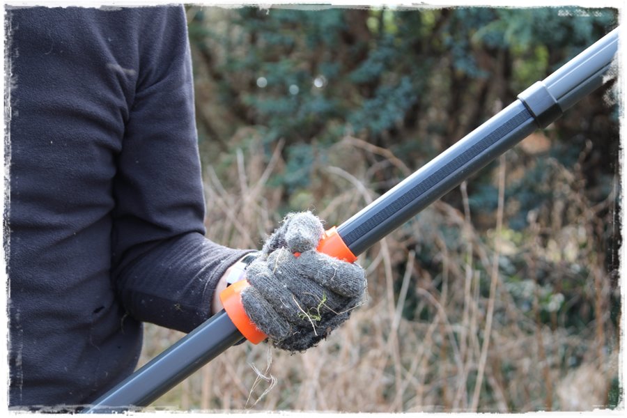 Z racji tego, że sam w sobie jest długi (bez rozłożenia 2,3 metra), już na starcie zapewnia możliwość pracy ze stosunkowo wysokimi drzewami. A po maksymalnym rozłożeniu, jak wspomniałem, ma długość 4,1 metra, co daje możliwość cięcia na wysokości około 6,5 metra.