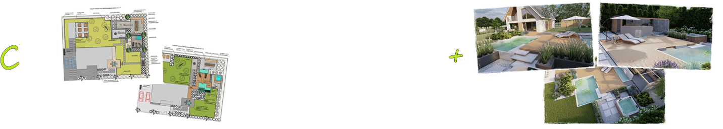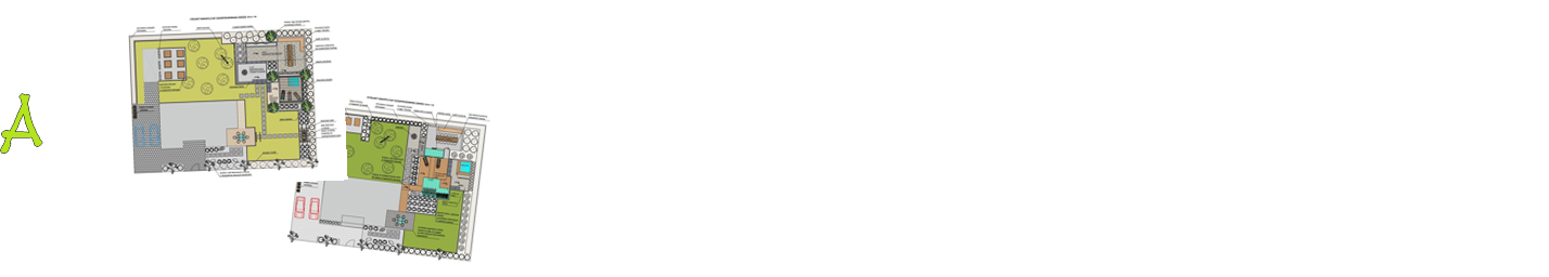 Dwie koncepcje w formie 2D – podział na strefy funkcjonalne ogrodu w formie rzutów koncepcyjnych 2D.