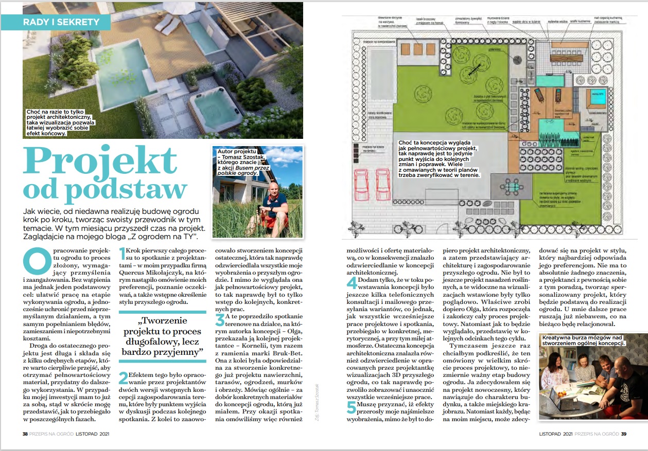 Warto mieć również świadomość, że cały proces rozpoczyna projekt ogrodu, którego absolutnie nie warto lekceważyć. Dlaczego? Ponieważ ma jeden, podstawowy cel: ma ułatwić pracę na etapie wykonywania ogrodu, a jednocześnie uchronić przed nieprzemyślanym działaniem, a tym samym popełnianiem błędów, zamieszaniem i niepotrzebnymi kosztami. Pisałem o tym wielokrotnie na blogu, a także na łamach wielu magazynów, w tym chociażby Muratora.
