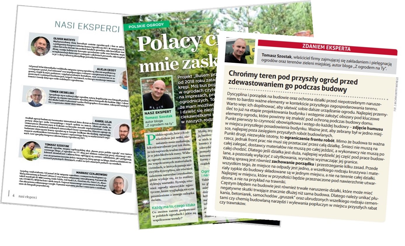 Dodam także, że jako „ekspert ogrodowy” (nie lubię tego określenia), swoją wiedzą mam okazję dzielić się również w licznych magazynach branżowych, które dostrzegają potencjał w tym, co robię. Poniżej kilka przykładów, a więcej w tej zakładce bloga.