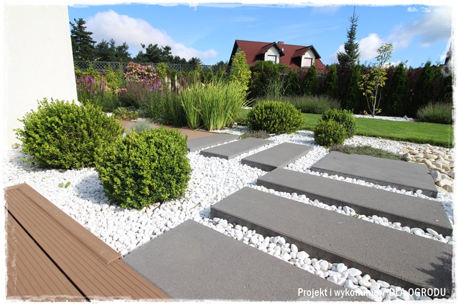 I tak faktycznie jest. Stąd też aby robiły naprawdę dobre wrażenie, to wykonanie rzeczywiście musi być dopracowane i wykonane na wysokim poziomie. W końcu zupełnie co innego jest prowadzić (wykonywać) np. obrzeże po jakiejś tam swobodnej linii, a co innego kiedy ma być równe i proste jak struna. Jeśli takie nie będzie, od razu będzie to zauważalne. A zatem to pierwsza ‘pułapka’, a ściśle mówiąc trudność ogrodów nowoczesnych: aby robiły dobre wrażanie, muszą być perfekcyjnie wykonane.
