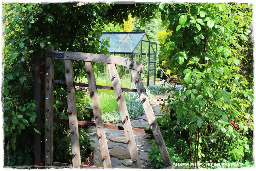 Ogród Marty, z racji swojego położenia, to typowy ogród podgórski. A zatem obowiązują w nim zasady, jak i spotkać można przedmioty, charakterystyczne dla takich właśnie lokalizacji. I oto pierwsza z brzegu, czyli stara brona, którą Marta zamieniła w oryginalną furtkę do warzywnika.