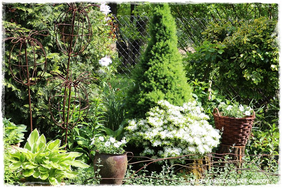 Natomiast zachwyca niebywała konsekwencja, zachowanie swobodnego, rustykalnego charakteru w jego urządzaniu. Nie uleganie modzie oraz nowym trendom i materiałom stosowanym we współczesnych ogrodach. Tu wszystko jest naturalne, nie ma absolutnie żadnych elementów, które odbiegałyby od obranego charakteru.