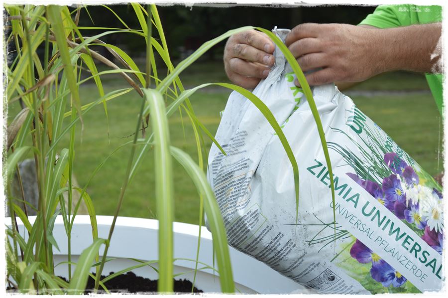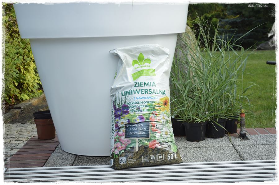 Wybór nie przypadkowo padł na wypróbowaną w nasadzeniach w donicach ziemię uniwersalną z humusem, nawilżaczem i nawozem marki KRONEN.