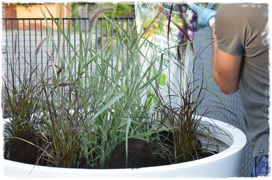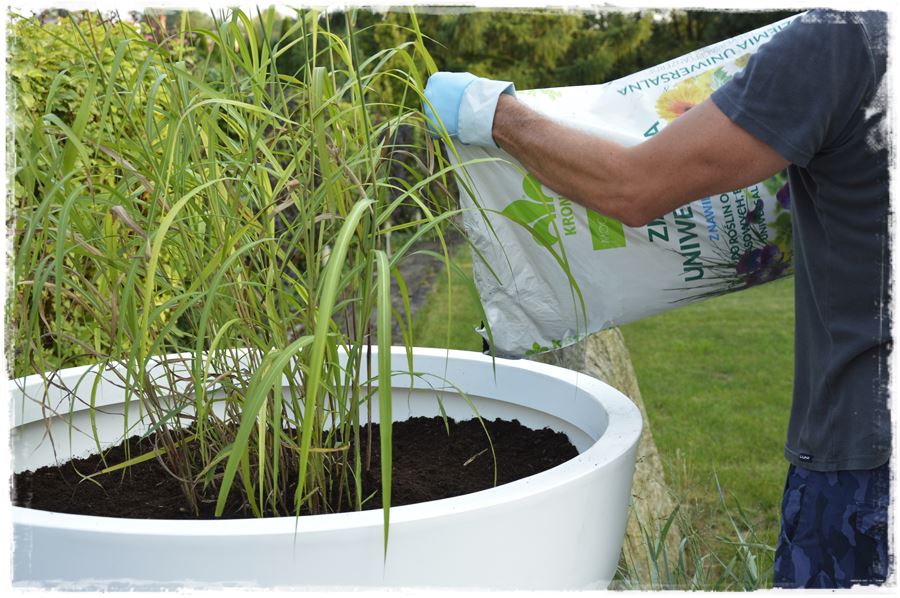 Wybrana przeze mnie mieszanka uniwersalna jest odpowiednia do wielu gatunków roślin, w tym również dla traw i bylin zastosowanych w tych kompozycjach. To kompozycja humusu i wysokowartościowego podłoża wyprodukowanego na bazie torfu wysokiego o różnym stopniu rozkładu, a dodatkowo wzbogacona włóknami drzewnymi o nazwie ECOFIBREX.