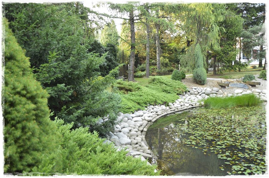 Stąd ogromne słowa uznania dla właściciela tego terenu, że dzięki determinacji i ciężkiej pracy, udało mu się stworzyć w tym miejscu nie tylko niezwykły, nowoczesny dom, ale przede wszystkim przepiękny, cudownie wpisany w krajobraz ogród. Natomiast kluczem do sukcesu było to, że wykorzystano atuty tego, co przyroda wcześniej stworzyła. Tym samym osiągnięto harmonijne połączenie budynku z otaczającym go terenem. Zachowano naturalny lasek składający się głównie z sosen, świerków i modrzewi, wśród których stworzono ścieżki z naturalnego kamienia – starego, rozbiórkowego granitu.