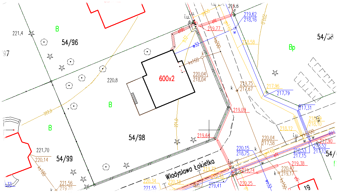 - rzędne czyli wysokości poszczególnych elementów mapy nad poziomem morza, przede wszystkim rzędne naszej działki, drogi czy innych elementów jak kanały, zasuwy wodociągowe itd.