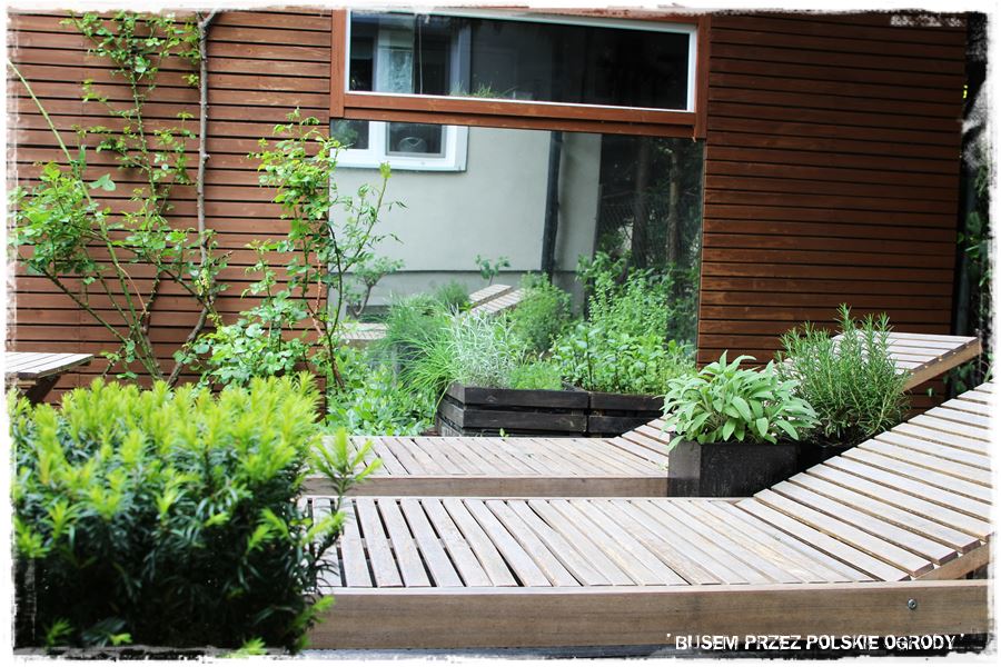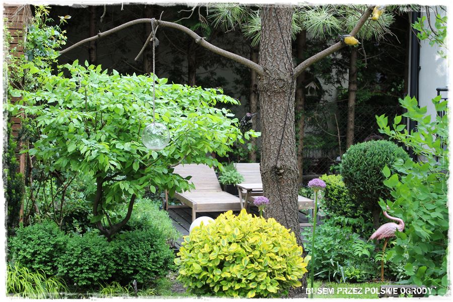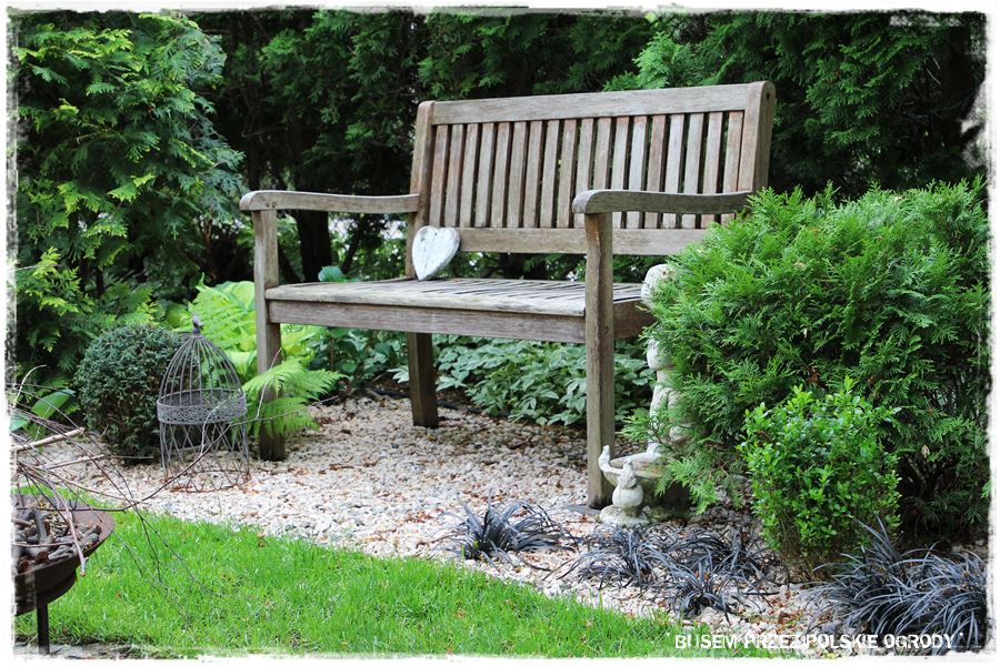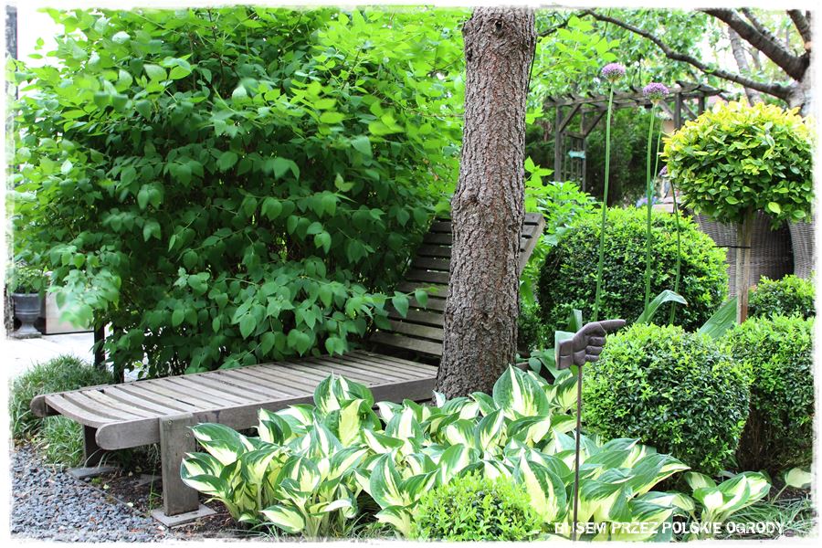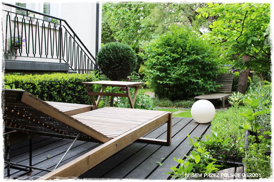 No dobrze, ale wracając do najważniejszych elementów. Wspomniałem na początku, że ogród urządzony jest wg zasady „usiądź i mnie podziwiaj”. A co to dokładnie oznacza? To, że w tej niewielkiej przestrzeni wkomponowanych jest kilka miejsc wypoczynkowych, w których można usiąść i oglądać ogród z różnych perspektyw. Niby jest to oczywiste, ale jednak w tym ogrodzie nabiera trochę innego znaczenia. Dlatego, że te właśnie kącki wypoczynkowe są tak umiejętnie wkomponowane, że same w sobie stają się dekoracyjne i stanowią elementy ogrodowej architektury.