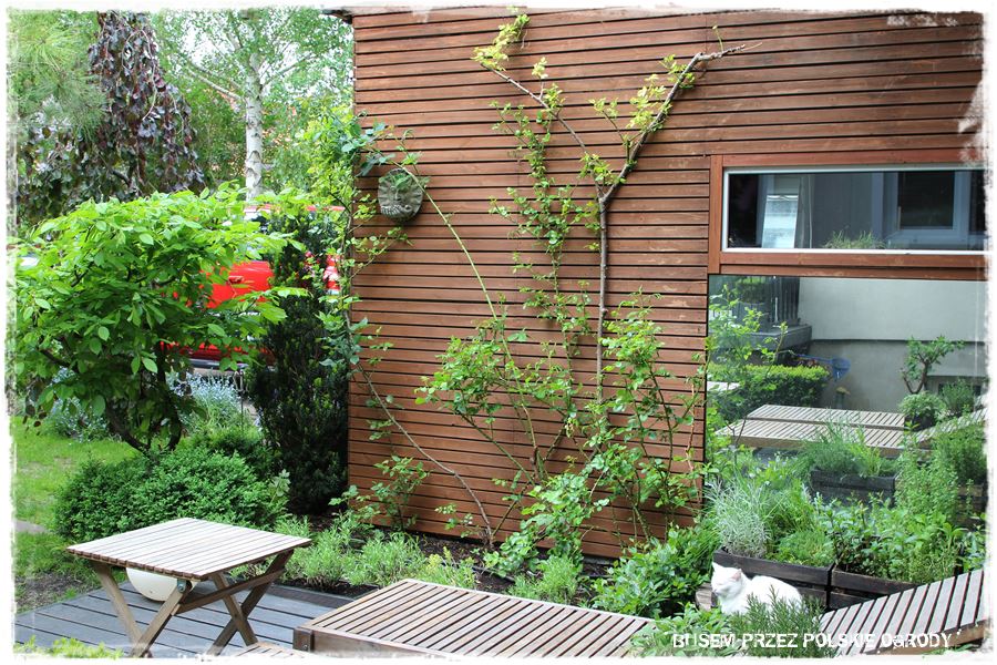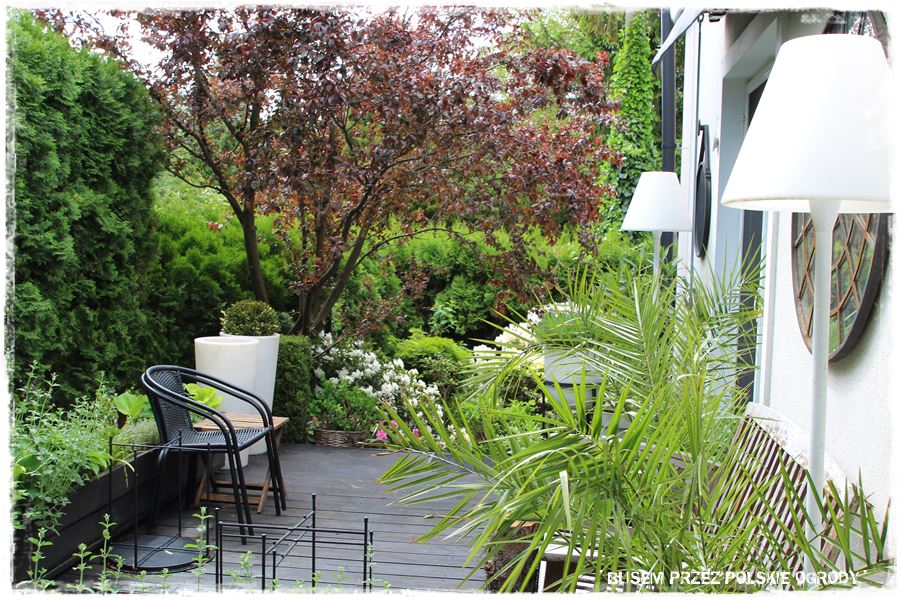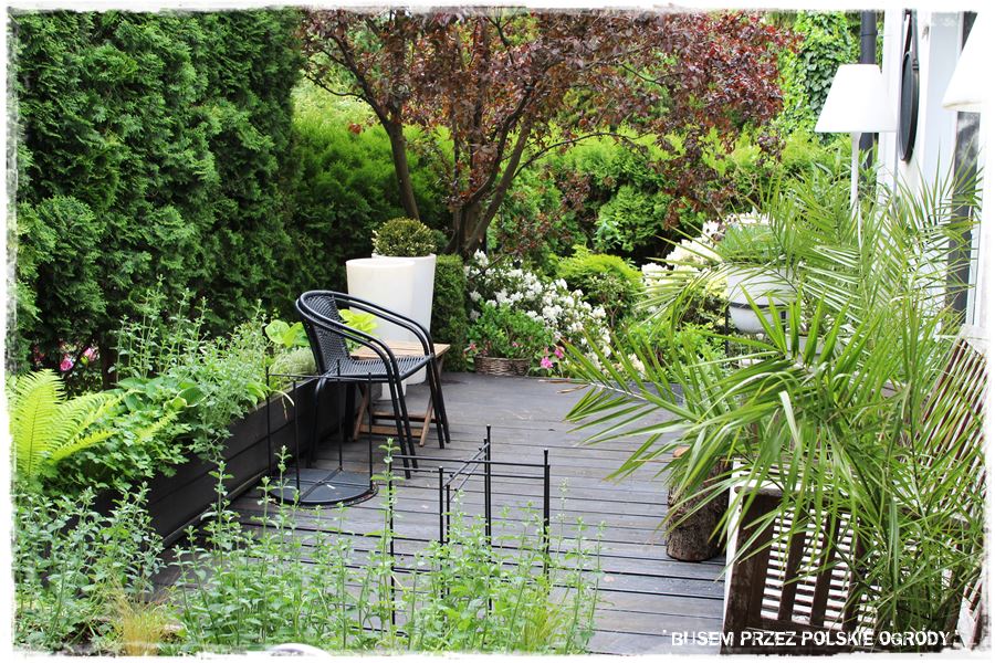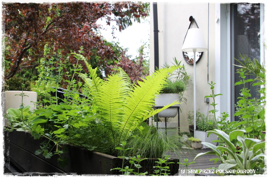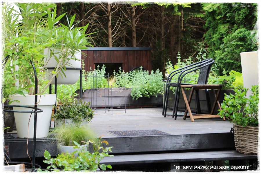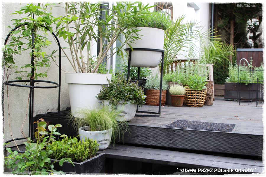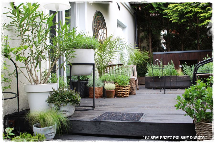 A co temu sprzyja? Przede wszystkim aranżacja. Stylowe dodatki i dobrze dobrane nasadzenia – oczywiście w pojemnikach. A wśród nich zioła przeplatane różnymi bylinami m.in. kocimiętką, szałwią czy lawendą. Z kolei tajemniczego nastroju dodają paprocie, a śródziemnomorski nastrój wprowadzają oleandry. O i gotowa recepta na sukces.