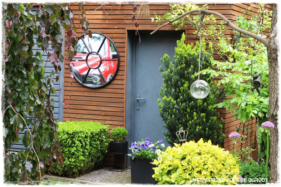 Oczywiście nie oznacza to, że ogród cały jest taki surowy. Bo nie jest, czego najlepszym dowodem jest zwykły garaż i budynek gospodarczy, którego aranżacja robi z niego efektowny i ozdobny ogrodowy element.