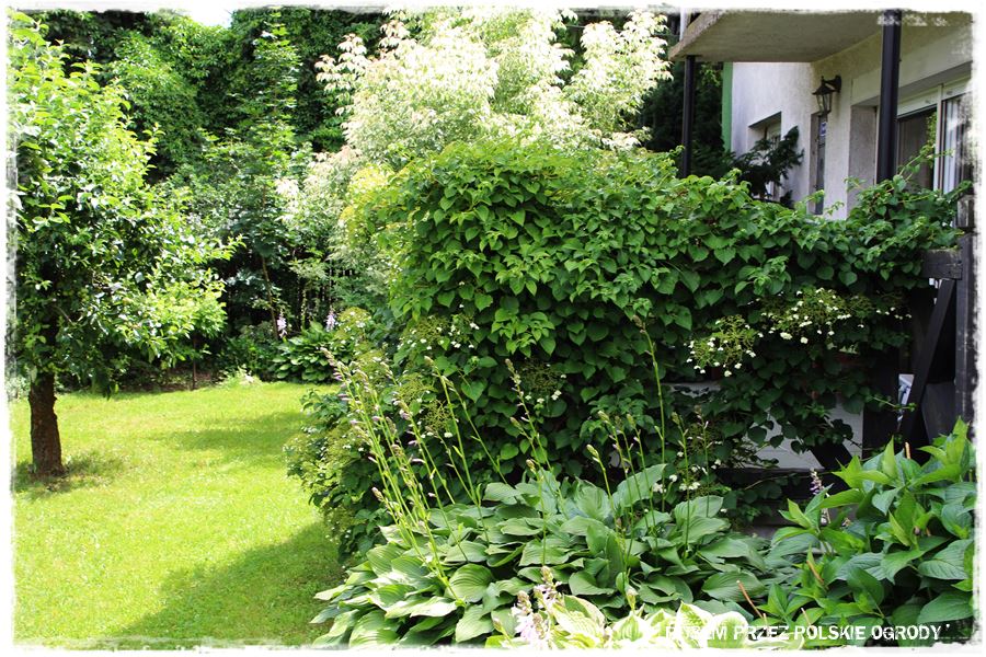 który tak naprawdę stanowi dużą roślinną aranżację, sięgającą aż do wspomnianego drewnianego płotu.