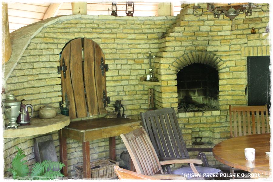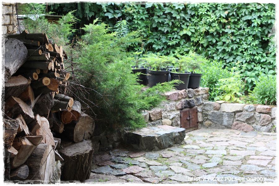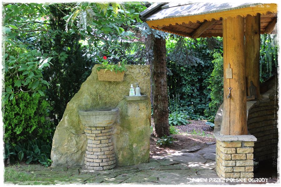 który zresztą jak cały ogród, przypomina mi nieco ogrody angielskie. W każdym razie zwróć uwagę na oryginalny stolik, do którego budowy użyty został kamień, chyba piaskowiec, obecny także w postumencie równie oryginalnej umywalki,