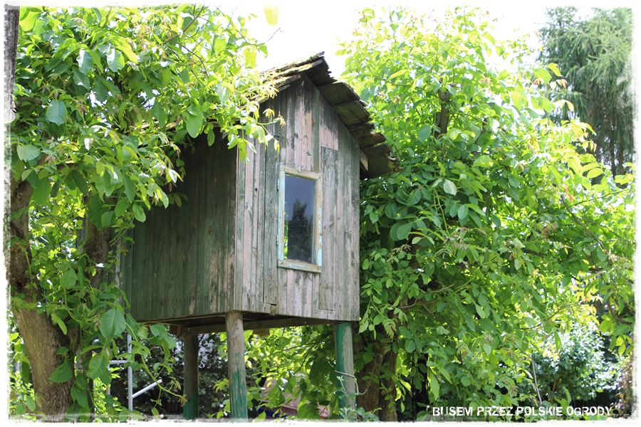 Ogród Asi i Artura, jak już zdążyłeś się przekonać, to wyjątkowo naturalistyczne miejsce. Nie ma tu absolutnie żadnych nowoczesnych materiałów, a wręcz przeciwnie, wszystko wykonane jest z kamienia czy drewna, a do tego z poszanowaniem tradycji. Przykładem może być chociażby ten drewniany domek zabaw,