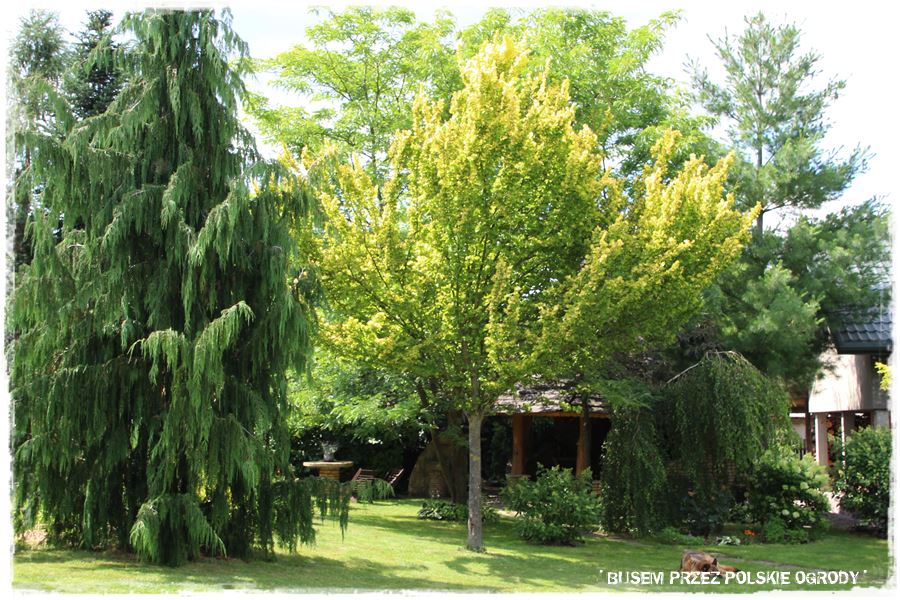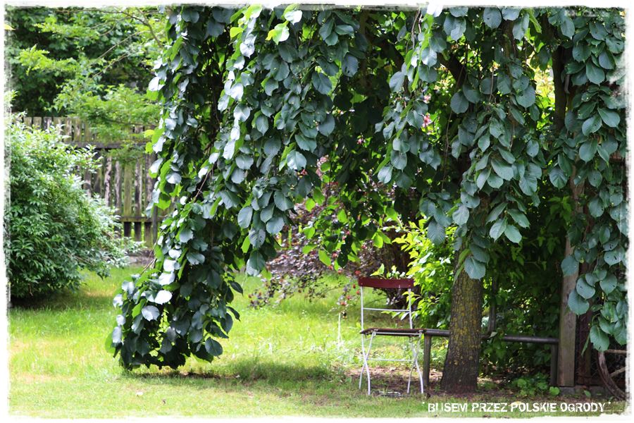 Ogród to także niezwykłe bogactwo roślin. Mnóstwo gatunków, ale i ciekawych odmian. Chociażby piękny, szczepiony i tworzący kopułę wiąz górski,
