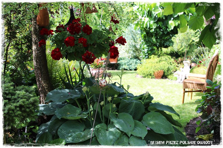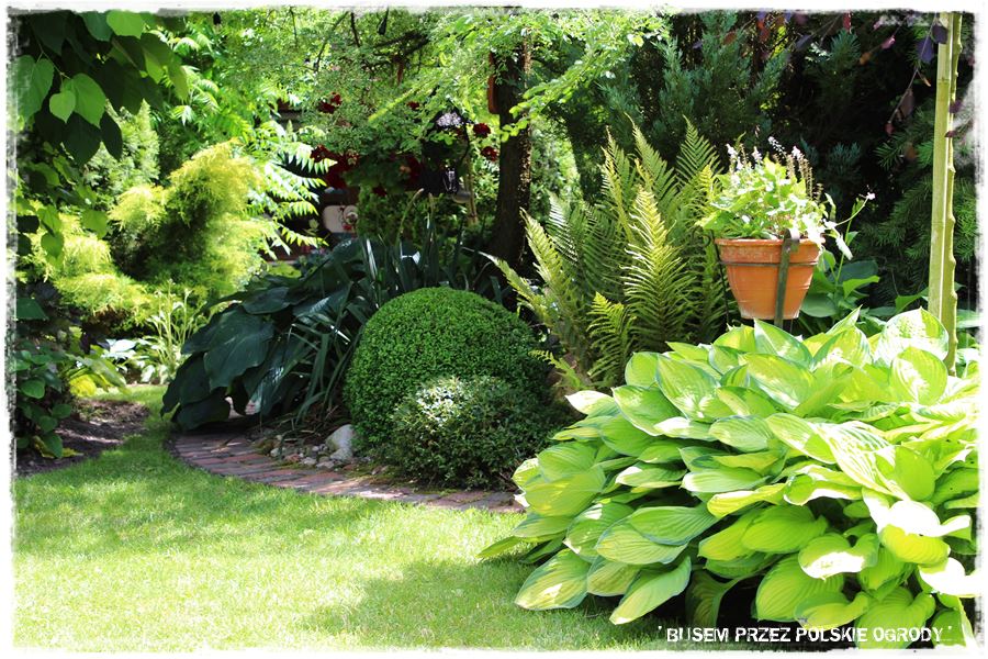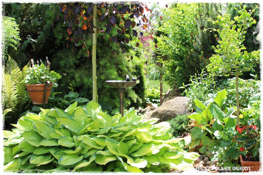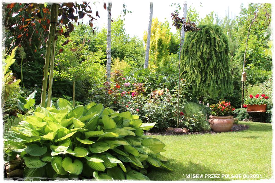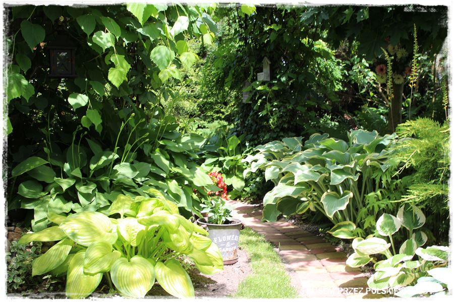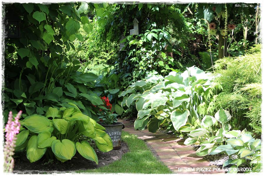 Rozpocznę od hostów, które w tylnej części ogrodu obecne są na każdym kroku, w wielu aranżacjach, jak i również odmianach, będąc efektownym wypełnieniem rabat.