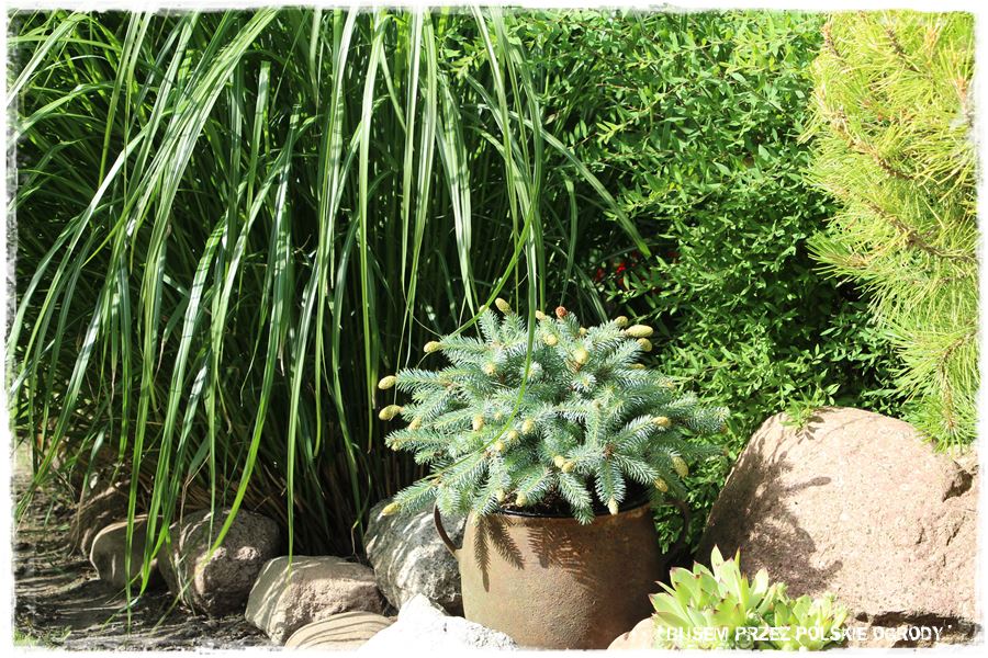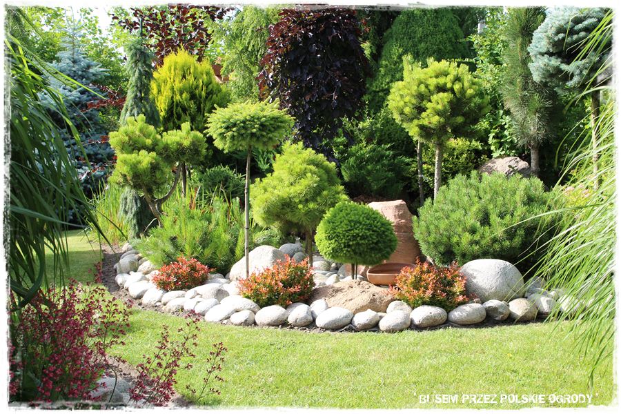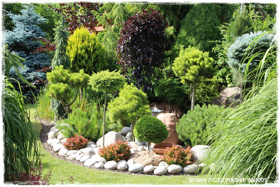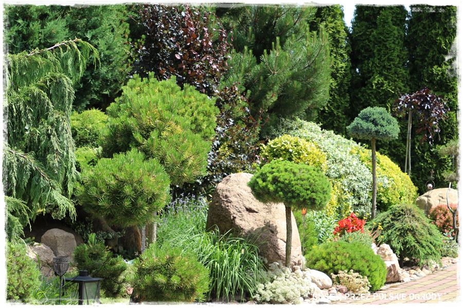 Sprawa druga warta uwagi, również efektowna ozdoba rabat – miniaturowe i szczepione na pniach iglaki.