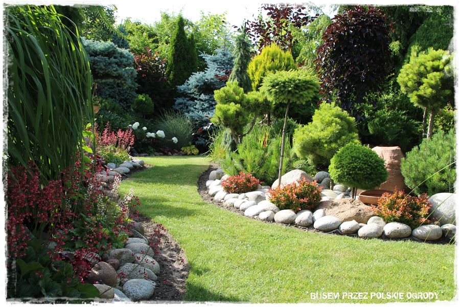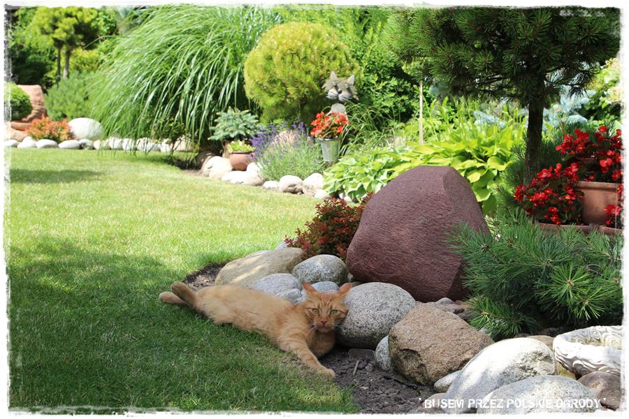 No właśnie to skoro jesteśmy w tym miejscu, to czas wspomnieć o kamieniu, w końcu jak wynika z tytułu, to ogród z kamieniem polnym. Spójrz więc jak to wygląda i jak ten kamień tworzy kompozycje na rabatach, jak również same ich obwódki.