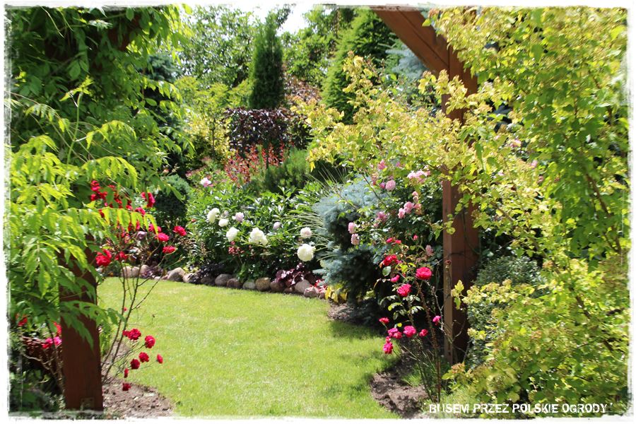 i do tego, z pozostałą częścią ogrodu, łączy się gustowną „różaną bramą”.